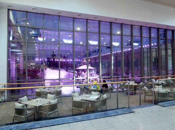 De skihal Ski Egypt biedt een gezellige après-ski met uitzicht op de pistes. Hier kun je na het skiën of snowboarden een drankje drinken.
