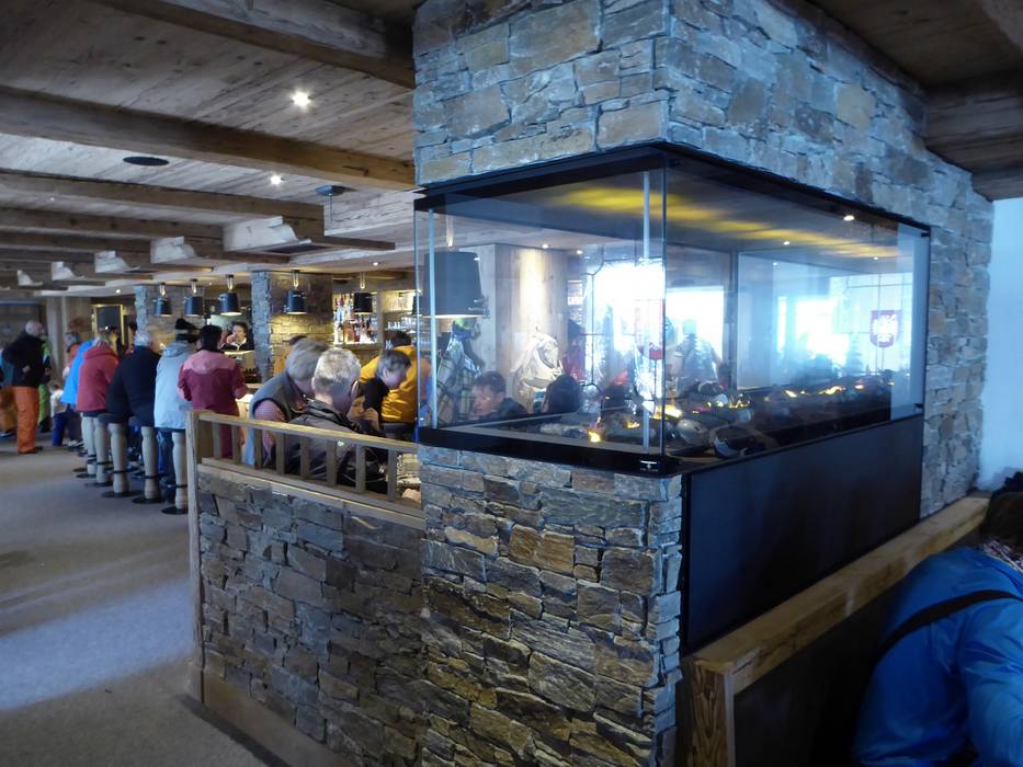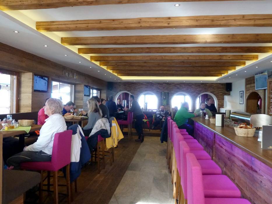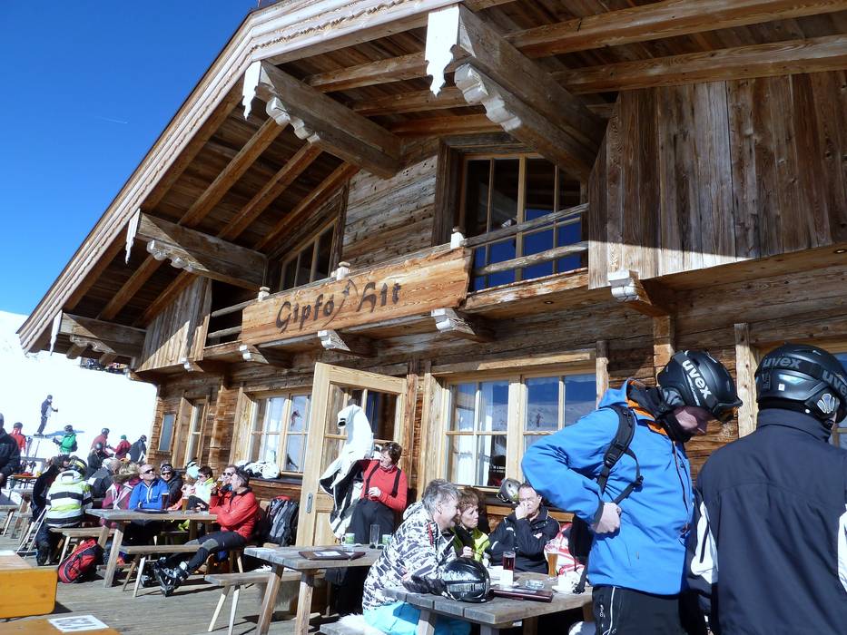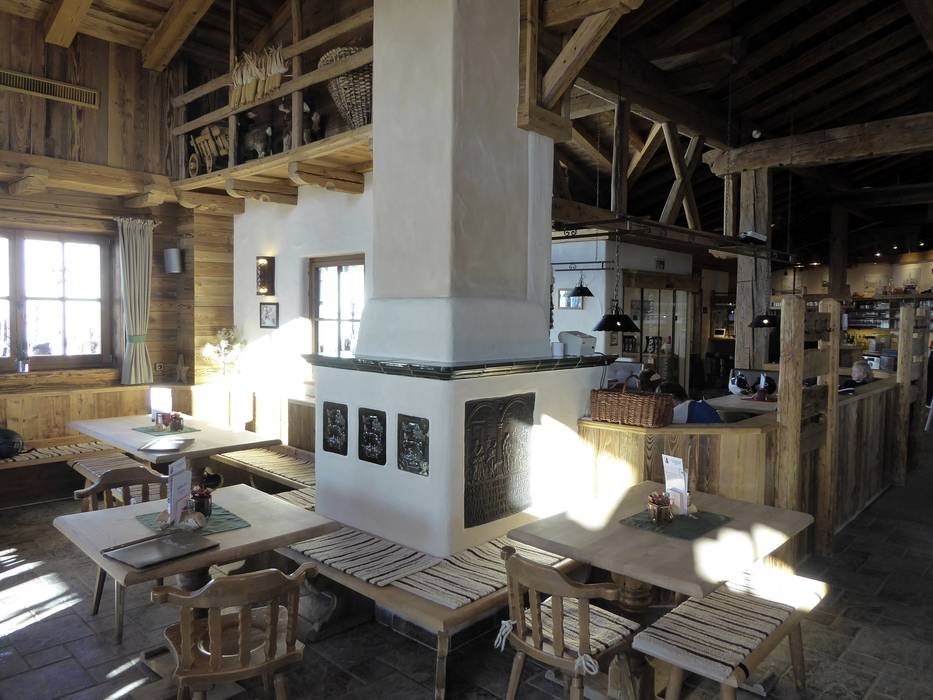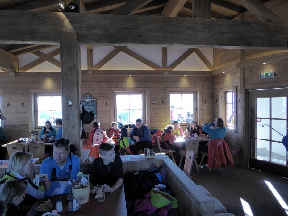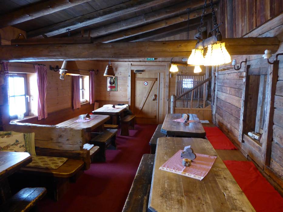 De gezellige hut is ingericht met veel hout in Tiroler stijl. Op koude dagen zorgt een tegelkachel voor warmte. Er worden typische Tiroler gerechten geserveerd en bij mooi weer nodigt het zonneterras met stoelen met bontbekleding uit om te ontspannen.