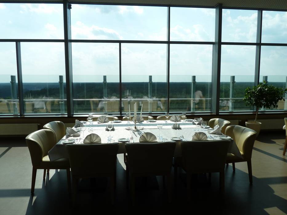 Het restaurant "Aero Gallery" biedt een hoogwaardige menukaart en een adembenemend uitzicht op de skihal en het uitgestrekte landschap. Een bar maakt het aanbod compleet. De toegang is via de lift vanaf de parkeerplaats en er moet hier 15 Litouwse Litas (ca. 4,30 EUR) entree worden betaald.