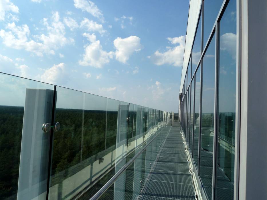 Op het hoogste punt van de skihal met uitzicht op de pistes en het landschap