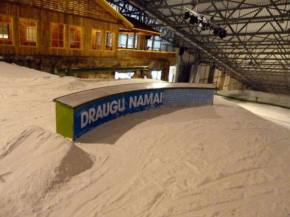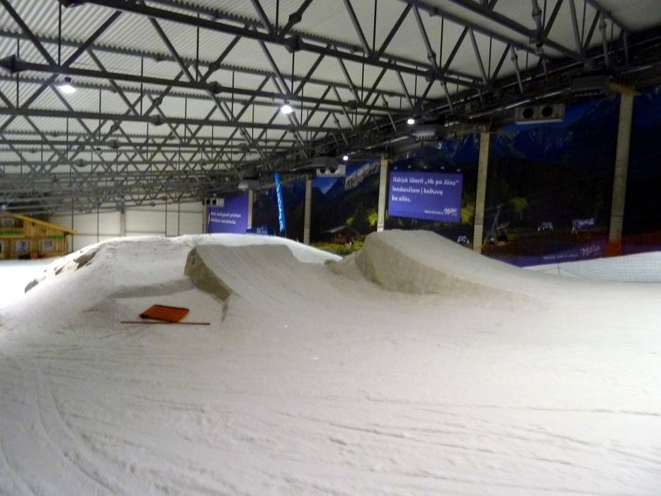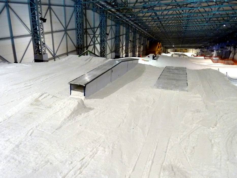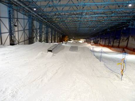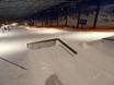 Het snowpark strekt zich bijna over de volledige lengte van de hoofdafdaling uit. Het is helaas niet toegestaan om het snowpark met huurmateriaal te betreden.