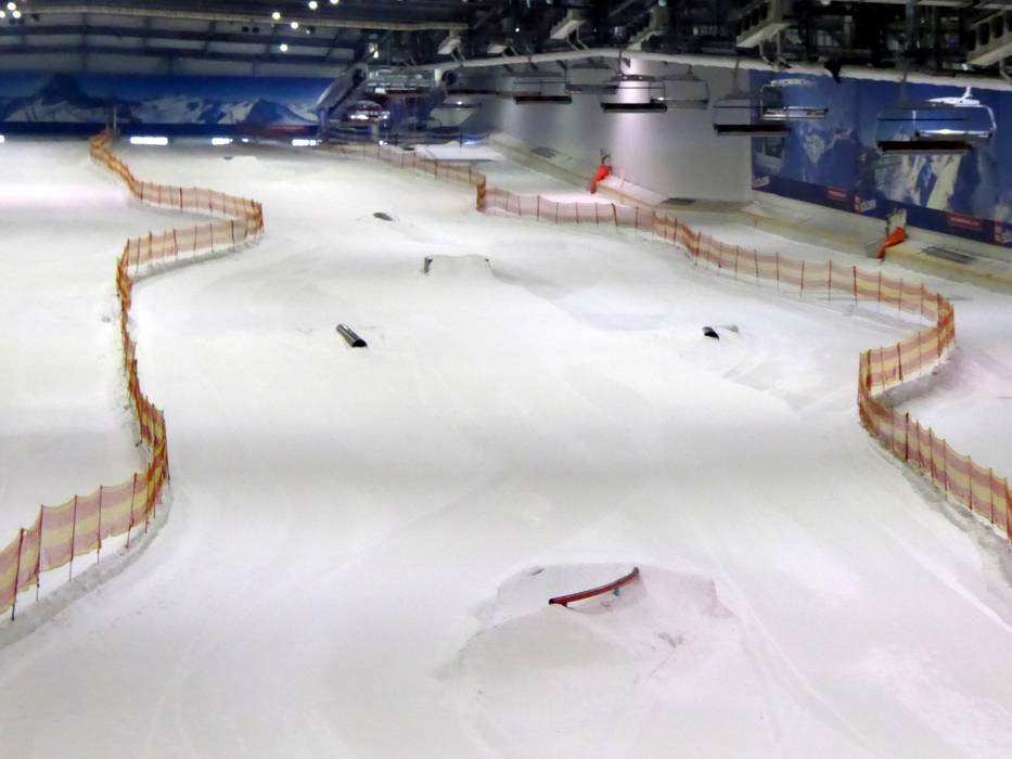 De skihal SnowWorld Bispingen biedt het hele jaar door een mooi snowpark met veel obstakels en jumps.