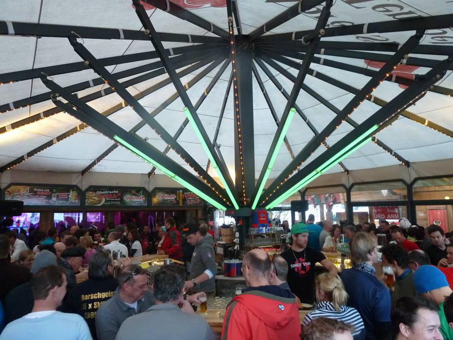 Grote après-ski tempel met paraplubar en gezellige partyhut.