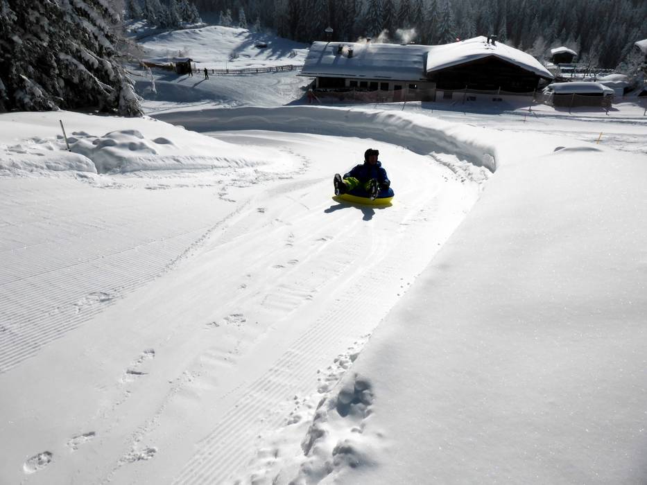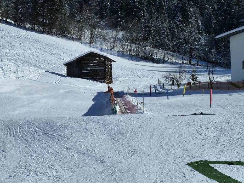 Met transportbanden en veel ander kindvriendelijk lesmateriaal naast de bergsleep in Wagrain.