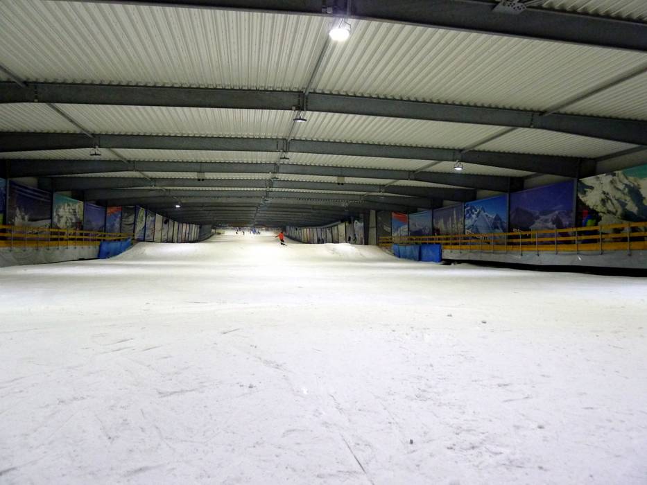 De skihal biedt verrassend veel mogelijkheden om de pistes te verkennen. De hoofdpiste is ongeveer 350 meter lang en 35 meter breed. Vanaf de hoofdpiste kom je direct bij de beginnerspistes. Deze zijn uitgerust met 3 transportbanden en lopen aan beide zijden elk ongeveer 50 meter bergop. De beginnerspiste vormt tegelijkertijd de verbinding naar een ander deel van de skihal. Daar bevindt zich een 100 meter lange, middelzware piste en de Fun Park evenals een Adventure Park.