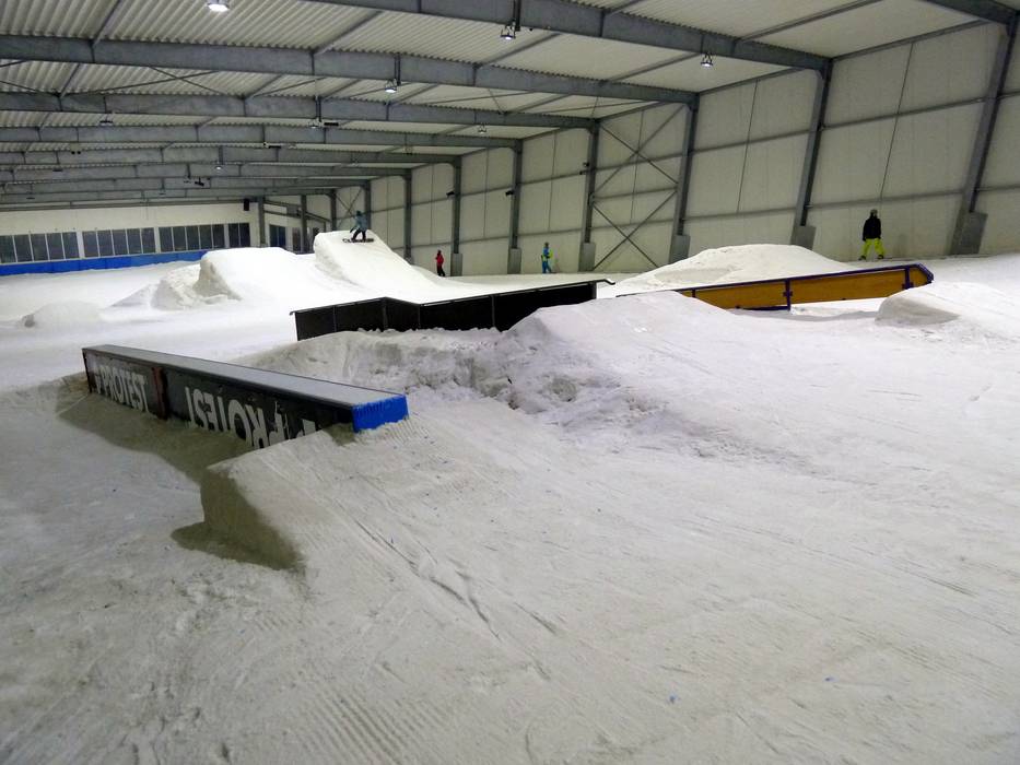 De skihal Snow Valley biedt naast een eigen Fun Park-hal met Adventure Park ook enkele obstakels in het beginnersgedeelte.