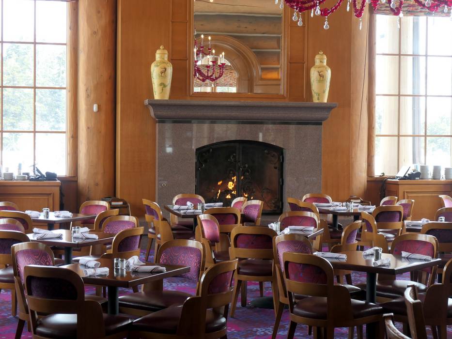 De ronde John Paul Lodge biedt een prachtig panoramisch uitzicht, Beierse en Amerikaanse gerechten in zelfbediening en knisperende open haarden.