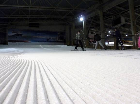 Elke nacht worden alle pistes in de skihal geprepareerd.