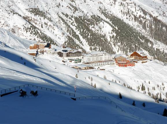 Vanaf de accommodaties in Sölden (1377 m) zijn de skipistes meestal te voet bereikbaar en er zijn ook enkele accommodaties met directe aansluiting op de piste. De hotels in Hochsölden (2090 m) liggen midden in het skigebied. Op de gletsjer zijn er geen overnachtingsmogelijkheden.