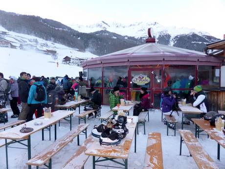 Geen twijfel mogelijk – de gasten in Sölden weten hoe je moet feesten! Niet voor niets wordt Sölden het "Ibiza van de Alpen" genoemd. Tussen de Giggijochbahn en de Gaislachkoglbahn vind je de ene après-ski locatie na de andere. Ook boven in het skigebied kun je voor de afdaling naar het dal nog terecht in diverse Schirmbars en hutten. In het dorp Sölden gaat het feest tot diep in de nacht door.