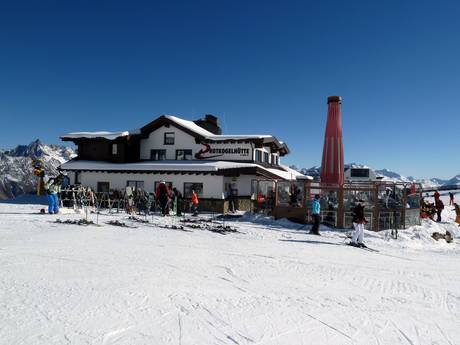 Traditionele berghut met groot terras en paraplubar. Er worden stevige broodmaaltijden, hartige soepen en geselecteerde daggerechten geserveerd.