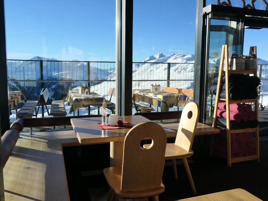 Het grote en mooie zelfbedieningsrestaurant biedt een goede keuze aan populaire lunchgerechten. Een uitgebreid saladebuffet evenals heerlijke strudels en verschillende soorten gebak breiden het aanbod uit. Het grote zonneterras nodigt uit om te blijven hangen. De ijsbar zorgt voor een goede sfeer. Het bergontbijt met aanmelding is een culinair hoogtepunt.