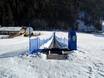 Direct bij het dalstation en het bergstation bevinden zich oefengebieden van de skischool. Elk oefengebied is uitgerust met een transportband, zodat je hier samen met een skileraar de eerste bochten in de sneeuw kunt oefenen. Er is ook een eigen slalompiste van de skischool bij het transportband Tottomandl.