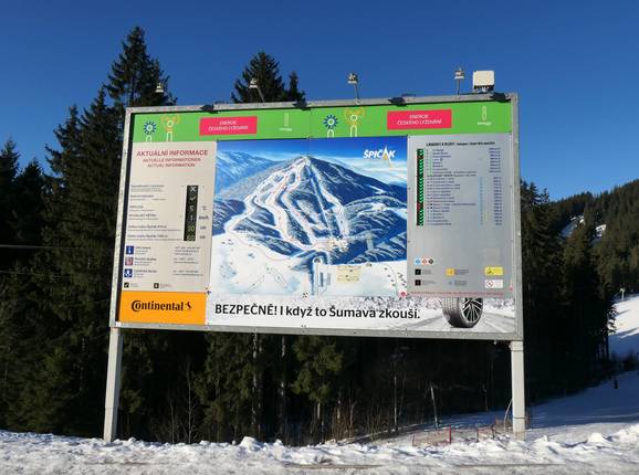 Oriëntatie (pistekaart, informatieborden, bewegwijzering piste) en veiligheid in het skigebied Špičák