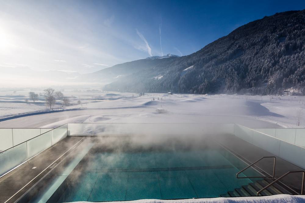 De Sportresidenz Zillertal****S op het terrein van de golfbaan in Uderns is een kleine luxe wereld op zich. In de winter liggen langlaufloipes en winterwandelpaden direct voor de hoteldeur. Met de hotelshuttle ben je snel en gemakkelijk in het eigen, meervoudig bekroonde skigebied Ski-optimal Hochzillertal Kaltenbach of bij de Spieljoch. Het boetiekhotel met zijn 33 kamers en suites komt tegemoet aan de basisbehoefte aan vrijheid en natuurlijkheid. De heldere vormen, de hoogwaardige inrichting en de doordachte ruimtelijke concepten maken het gemakkelijk om even aan het dagelijks leven te ontsnappen. De kers op de taart – ook vanwege het uitzicht op de witte toppen van de Zillertaler Alpen – zijn de Penthouse Suite (70 m2) met privé relaxzone en de Albatros Suite (90 m2) met binnensauna en twee slaapkamers. Altijd “bovenop” zijn in de Sportresidenz Zillertal****S ook alle wellnessliefhebbers: het wellnessgedeelte met de naam “Cloud 7” belooft weldadige ontspanning in sauna’s en stoombaden, bij schoonheidsbehandelingen of massages. Voor een verfrissende duik met vrij uitzicht op de Zillertaler bergen nodigt het infinity zwembad op het dak uit.