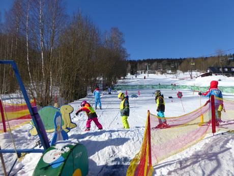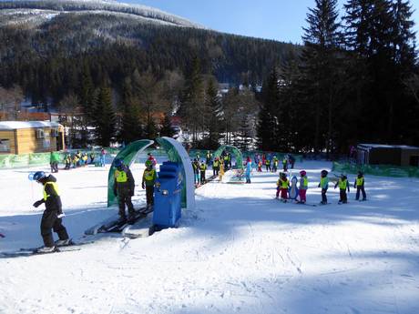 In het skigebied Spindlermühle zijn families en kinderen van harte welkom. De skischool Skol Max beheert kinderlanden bij bijna alle dalstations. In de skikleuterschool Teddy Bear en bij de kinderopvang Pribináček zijn de allerkleinsten in goede handen. De brede pistes en de Funtrack Hromovka zijn plezier voor het hele gezin. In Bedřichov is er een snowtubingbaan en een extra oefenlift.