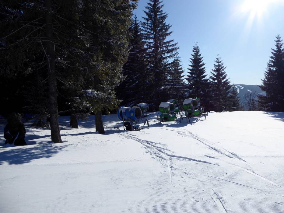 Bijna het hele skigebied Spindlermühle kan met krachtige sneeuwkanonnen worden besneeuwd. De dalafdalingen zijn meestal van de eerste tot de laatste dag van het seizoen mogelijk. Daarom kan het skigebied Spindlermühle als zeer sneeuwzeker worden beschouwd.