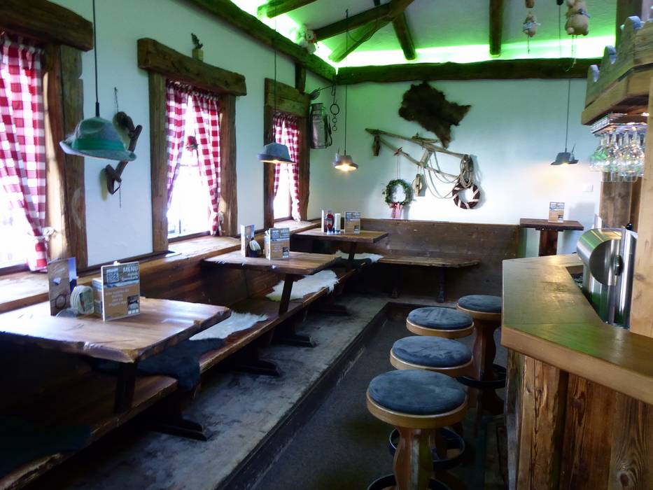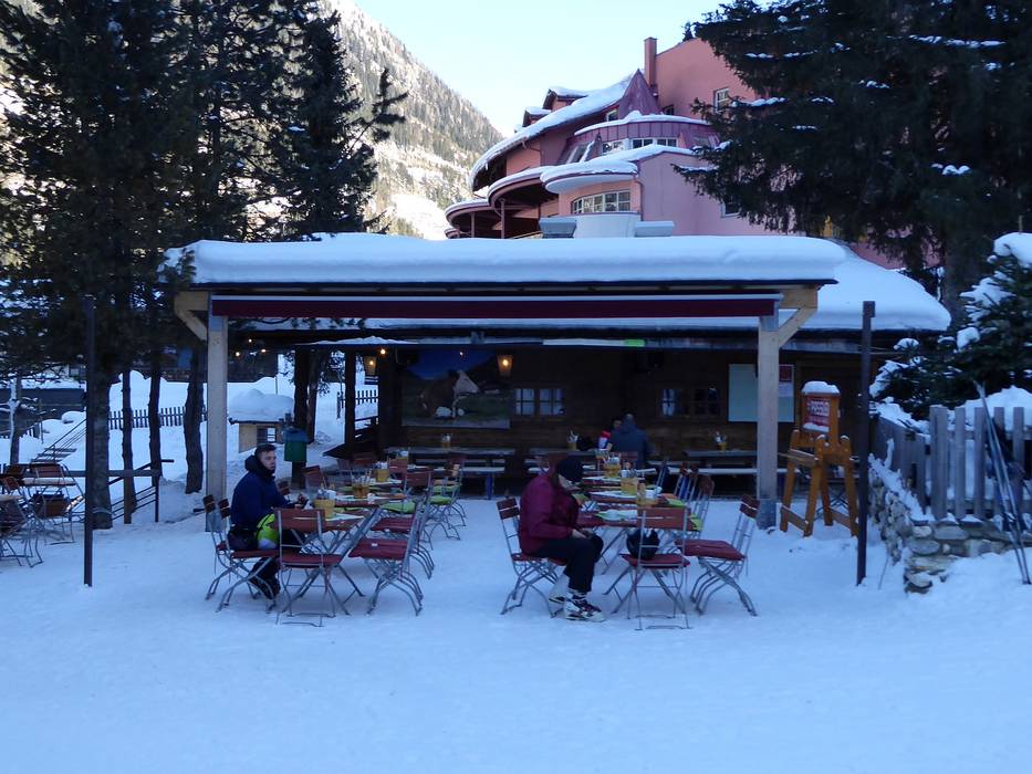 Sfeervolle après-ski hut met bar en gezellige zithoek. Meestal erg druk bezocht.