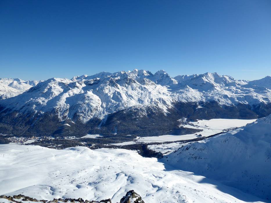 Top of St. Moritz - de 3057 m hoge Piz Nair Lej da la Pêsch met uitzicht op de Fuorcla… Uitzicht vanaf de Piz Nair over het Engadin Uitzicht vanaf Salastrains op het skigebied van…