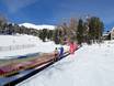 De beschermde Kids-Zone met eigen transportband bevindt zich bij het station Marguns. Hier kunnen de kleintjes in alle rust genieten van de grappige figuren van de Mountys en op speelse wijze kennismaken met de wintersport.