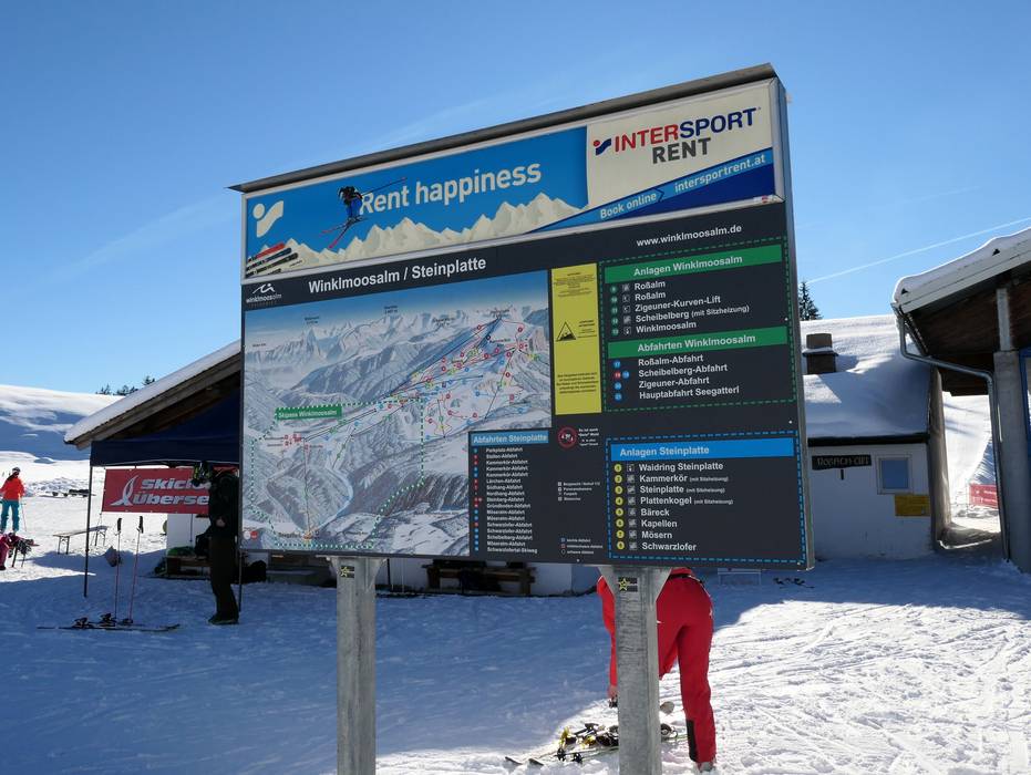 Het pistegeleidingssysteem is zeer geslaagd. De pistes zijn duidelijk aangegeven en de liften zijn met grote borden boven het hoofd zeer goed gemarkeerd. De bewegwijzering naar de Steinplatte (Oostenrijk) en naar de Winklmoosalm (Duitsland) is zeer duidelijk. Grote informatieborden op veel plaatsen in het skigebied maken de oriëntatie gemakkelijker. Ook de snowparkregels op borden bij de liftpalen zijn het vermelden waard.