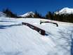 Het K2 Snowpark Štrbské Pleso ligt iets boven het dalstation en biedt kickers, rails en boxen.