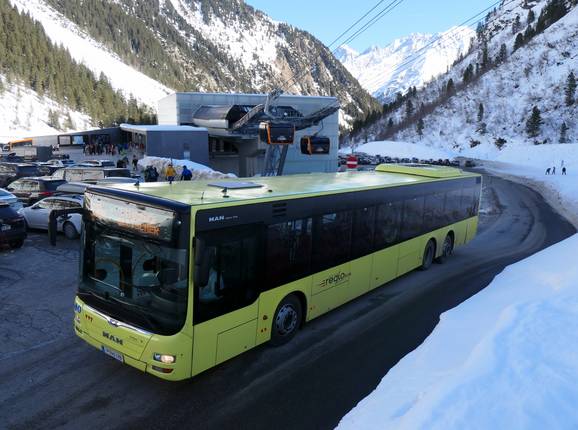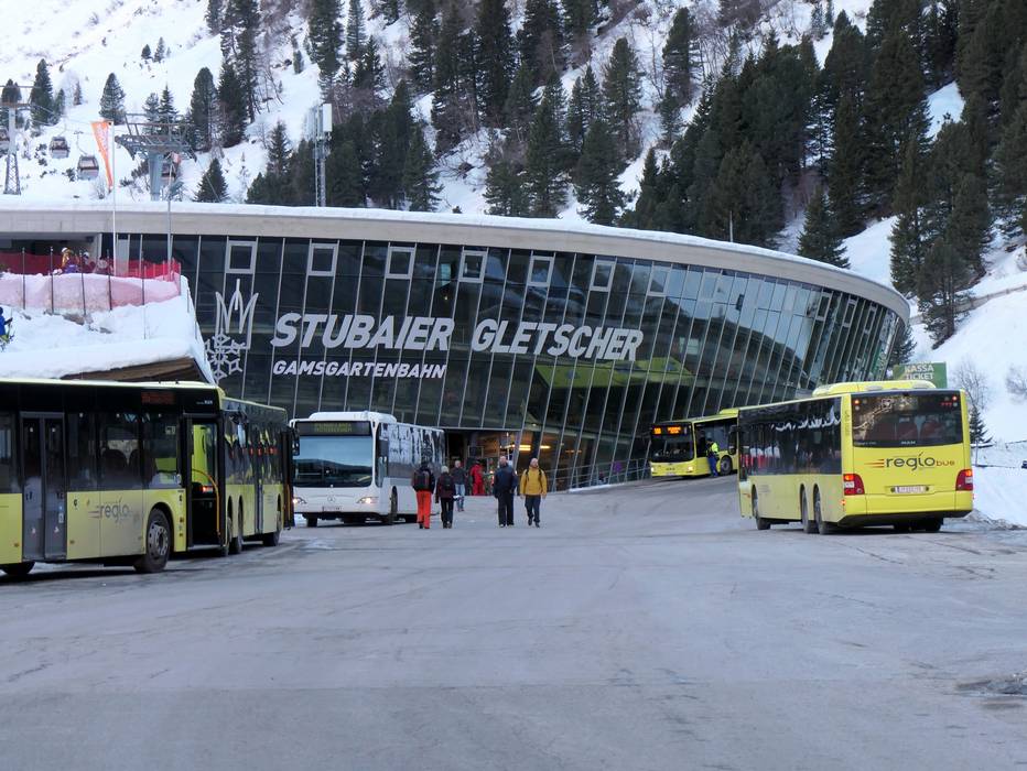 Vanaf het centraal station van Innsbruck rijdt er een lijnbus rechtstreeks naar het dalstation Mutterberg bij de Stubaier Gletscher. - uitgebreid skibusnet