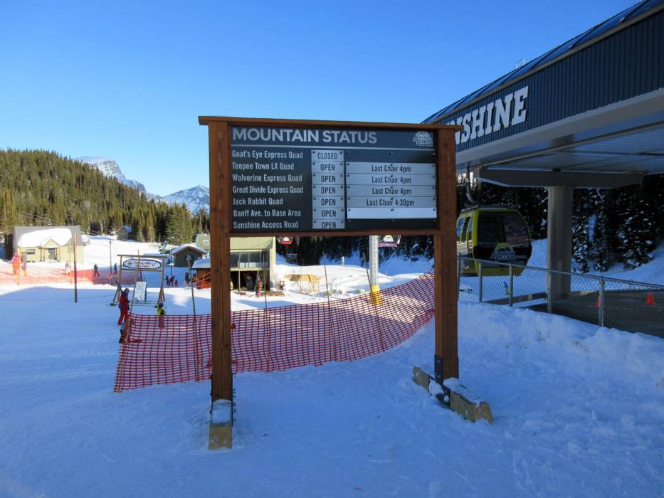 | Opmerking: De openingstijden zijn algemene informatie van het skigebied Sunshine Village en kunnen afhankelijk van de sneeuwcondities, werkdagen, vakanties en feestdagen variëren. | |