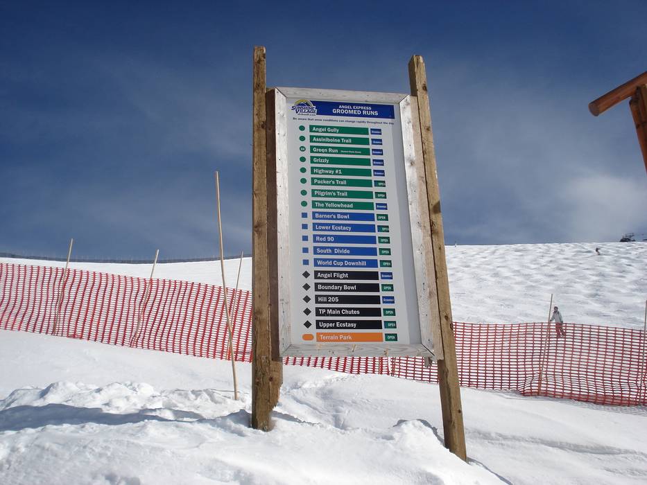 Oriëntatie (pistekaart, informatieborden, bewegwijzering piste) en veiligheid in het skigebied Banff Sunshine