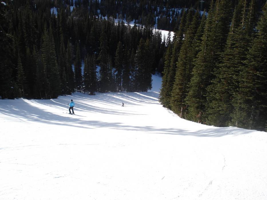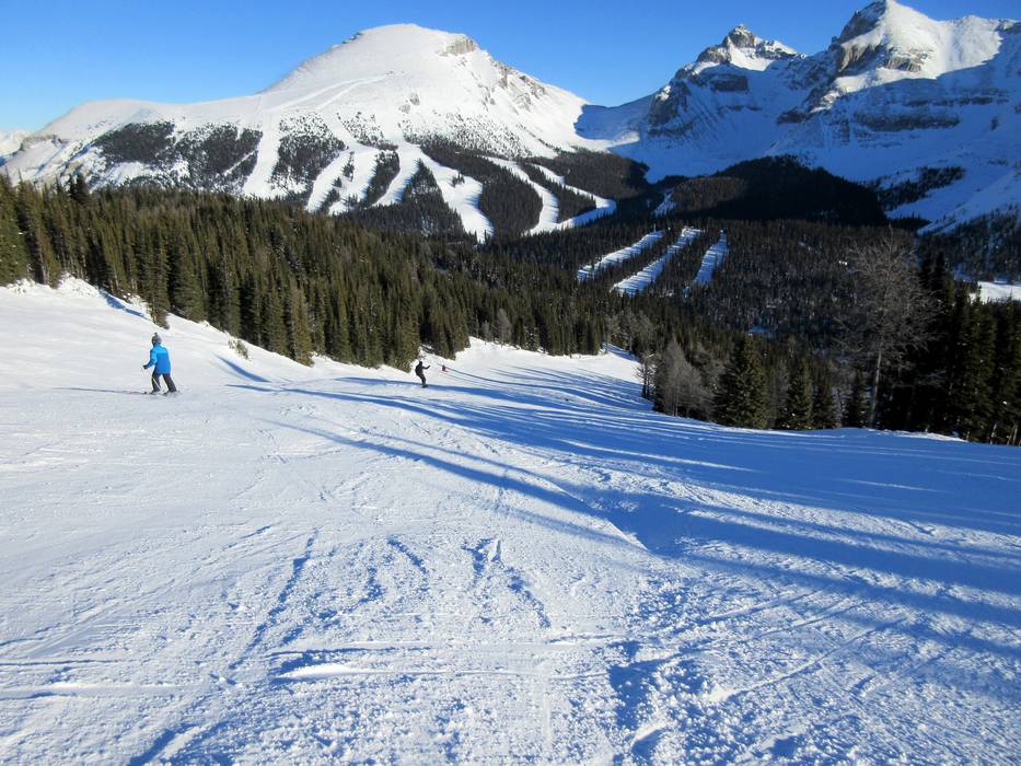 De langste afdaling loopt vanaf Lookout Mountain over de makkelijke piste nr. 34 Green Run naar Sunshine Village en vervolgens verder over de makkelijke piste nr. 1 Banff Avenue tot aan het dalstation. Je kunt met de vierpersoonsstoeltjeslift Jackrabbit een kort stuk omhoog zweven en zo een lang vlak stuk vermijden.