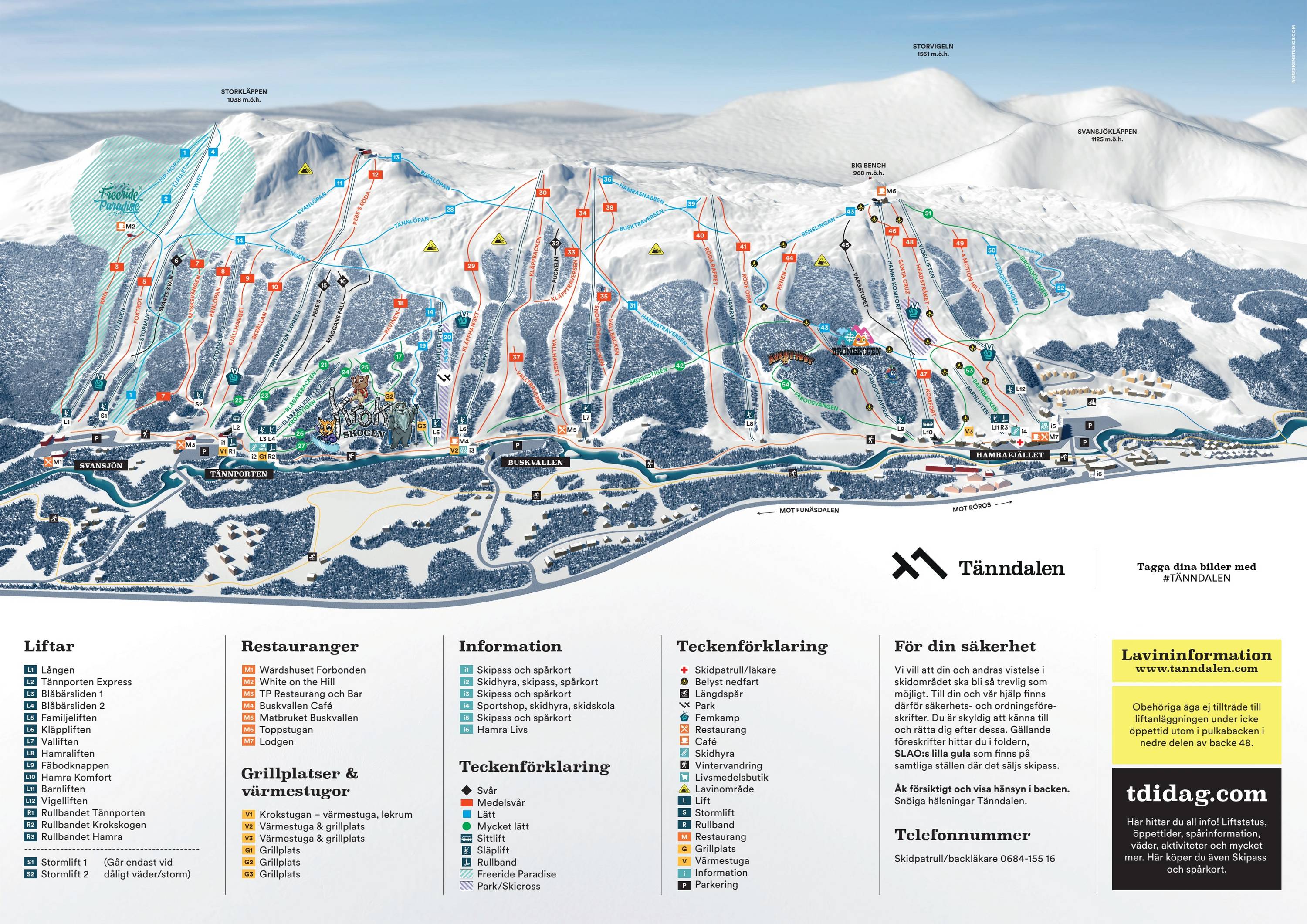Svansjön (0 km), Tännporten (0,1 km), Hamrafjället (0,2 km), Buskvallen Plaatsen bij het skigebied