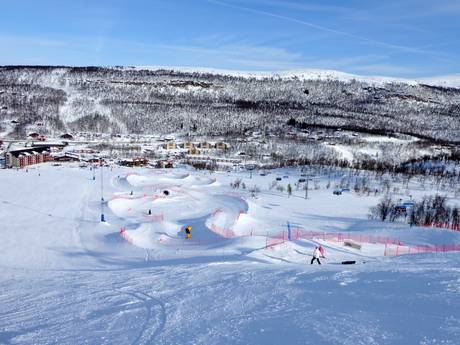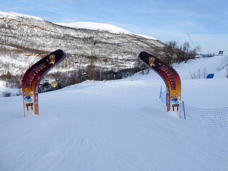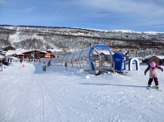Een liefdevol aangelegd kindergebied in Hamra met een eigen kinderlift, transportband en veilige oefenzones – ideaal voor de eerste stappen in de sneeuw.