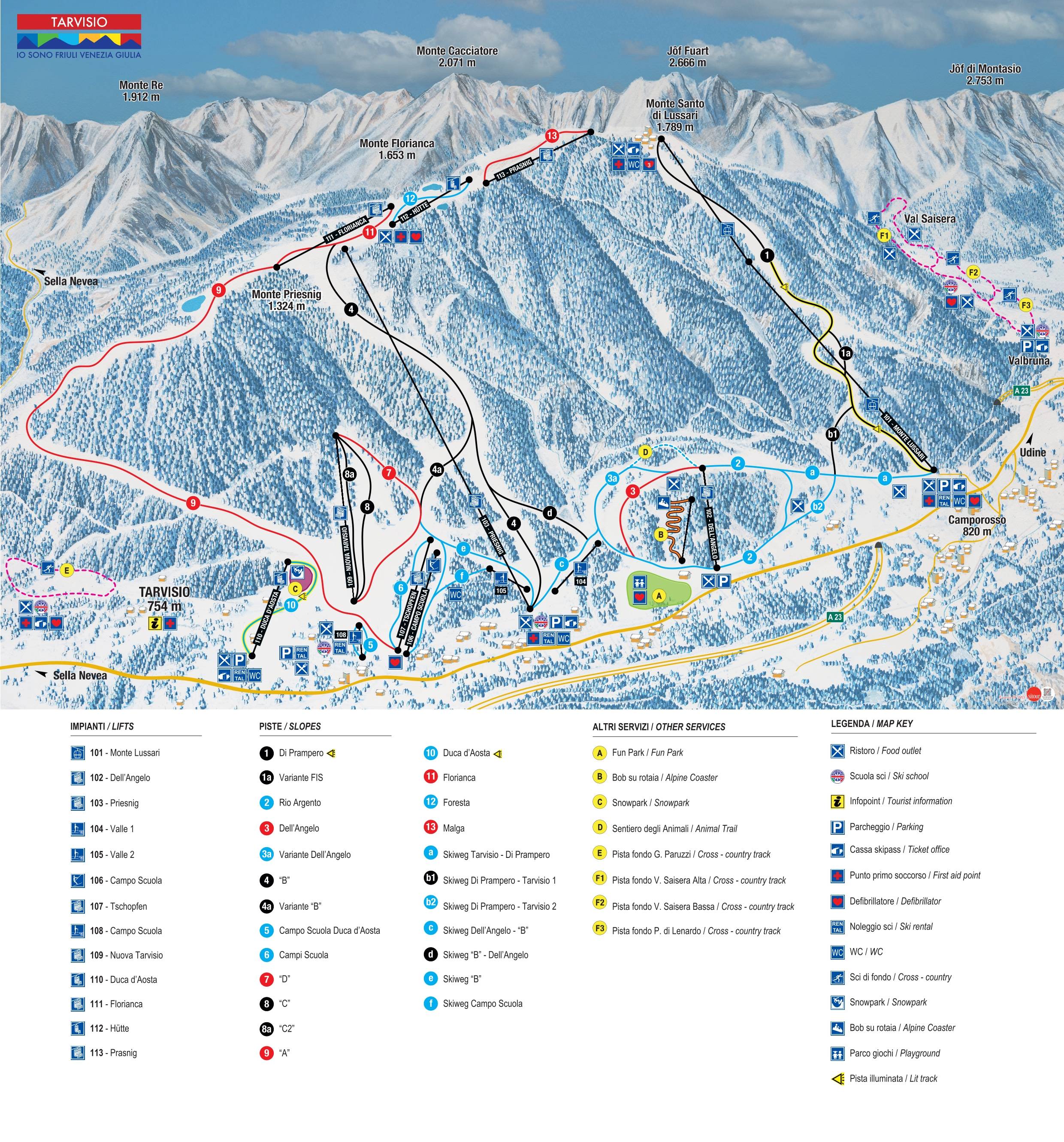 Tarvisio (1,7 km), Camporosso in Valcanale (0,7 km) Plaatsen bij het skigebied