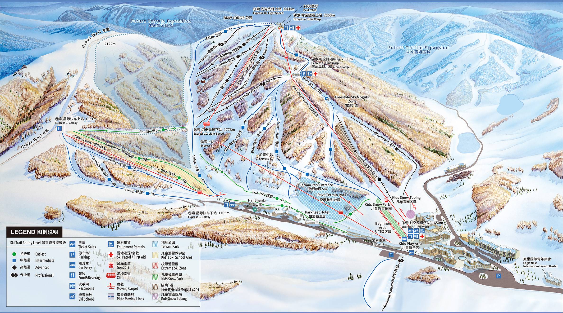 Chongli (26 km), Zhangjiakou (71 km) Plaatsen bij het skigebied
