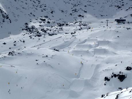 Het skigebied The Remarkables biedt onder de naam Remarks Parks meerdere snowparks, van makkelijk tot moeilijk, bij de zespersoons stoeltjeslift Sugar Bowl Express.