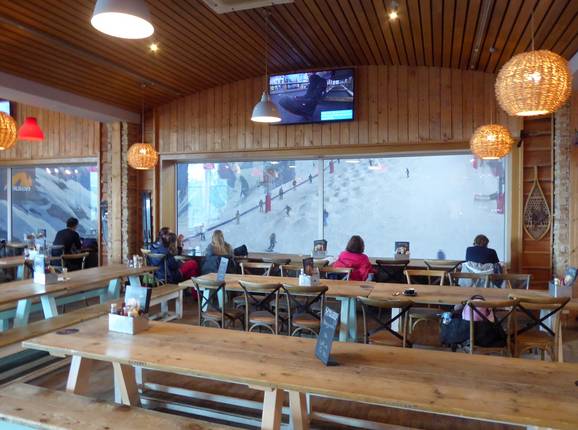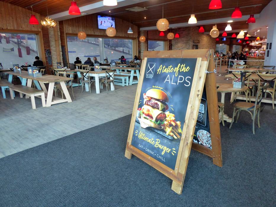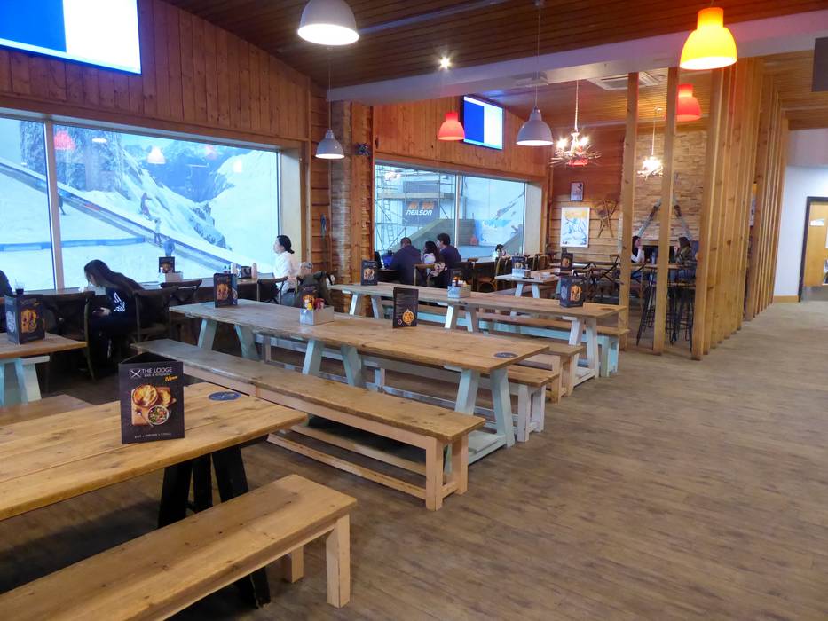 Direct in de skihal The Snow Centre bevindt zich The Lodge Bar & Kitchen. Vanuit de bar en het restaurant heb je een prachtig uitzicht op de pistes.