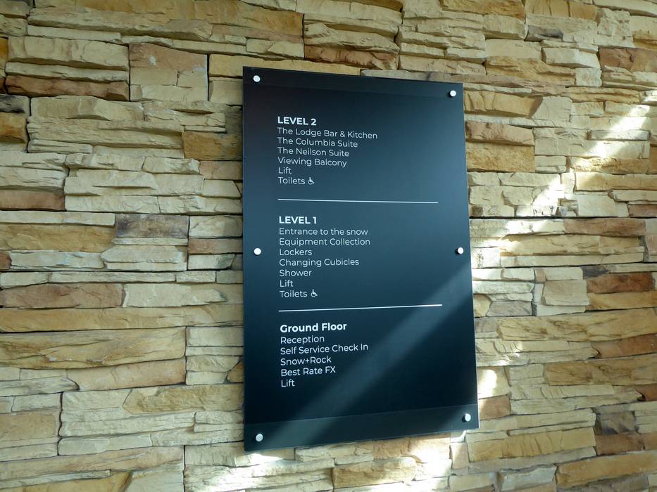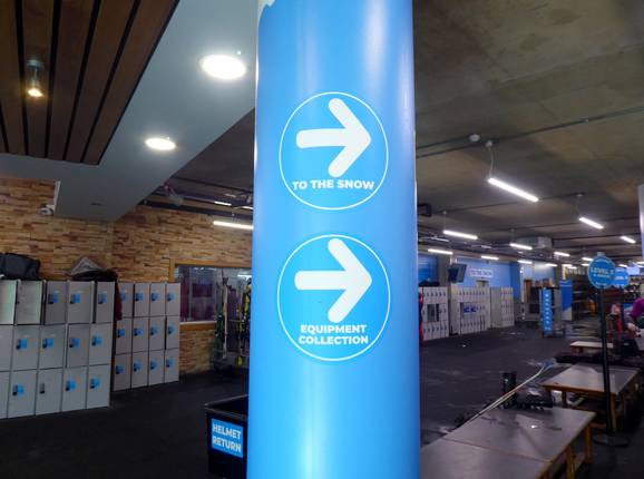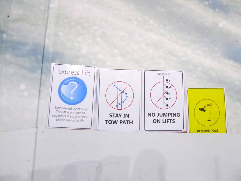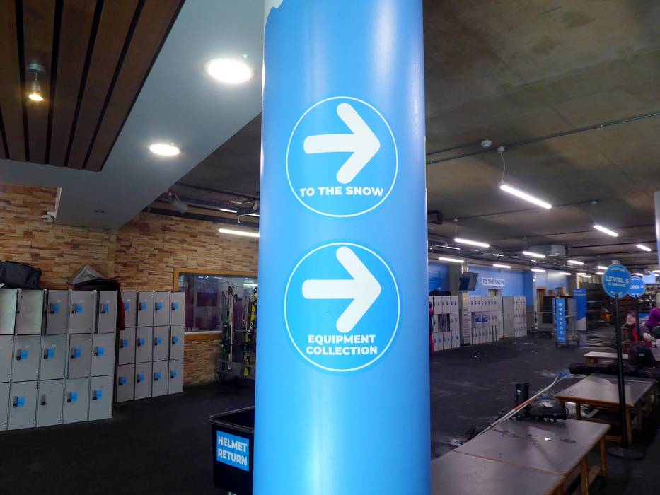 Er zijn enkele informatieborden in de kleedruimte van de skihal. Over het algemeen zijn er weinig borden op de pistes. Door de grootte van de skihal kun je echter gemakkelijk je weg vinden.
