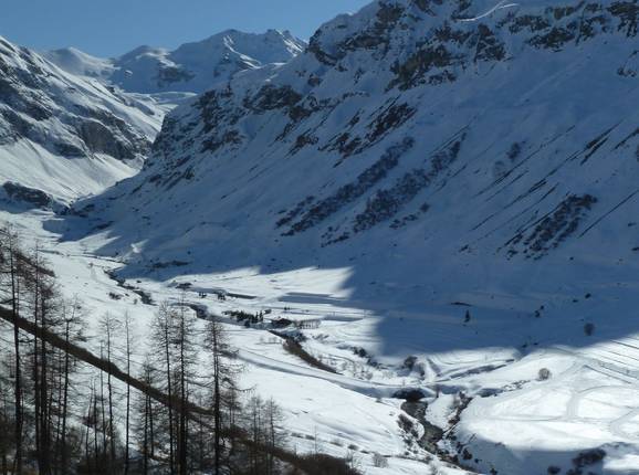 Tignes (4 km) en Val d'Isère (23 km) bieden sneeuwzekere loipes in een schitterend berglandschap. Zeer aan te bevelen is de langlaufloipe rond het bevroren meer van Tignes, tussen Val Claret en Tignes Le Lac. Een ander langlaufgebied wordt, afhankelijk van de sneeuwcondities, in Les Brévières geprepareerd. In Val d'Isère trekken de routes La Daille, Manchet en Laisinant veel langlaufers aan.