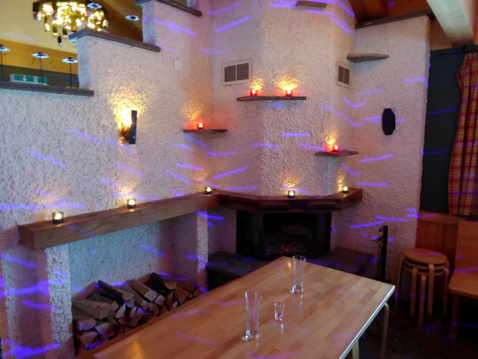 Aan het einde van een geslaagde skidag kun je in het dal genieten van après-ski. Het chalet biedt goede muziek en een gezellige sfeer. Bij het knisperende vuur kun je je opwarmen.