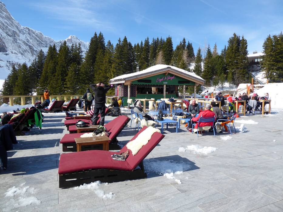 Op het zonneterras bij de Trübsee kun je de skidag perfect afsluiten bij de Engel & Bengel Bar. In het weekend spelen er bands of draait er een DJ. De ideale plek voor après-ski voordat je terug naar het dal skiet.