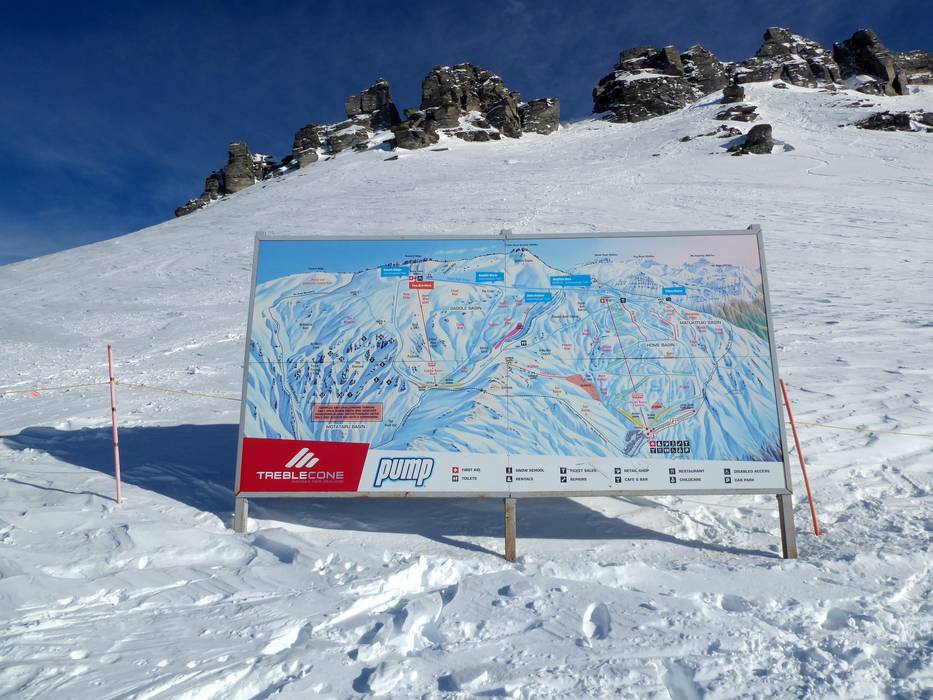 Oriëntatie (pistekaart, informatieborden, bewegwijzering piste) en veiligheid in het skigebied Treble Cone