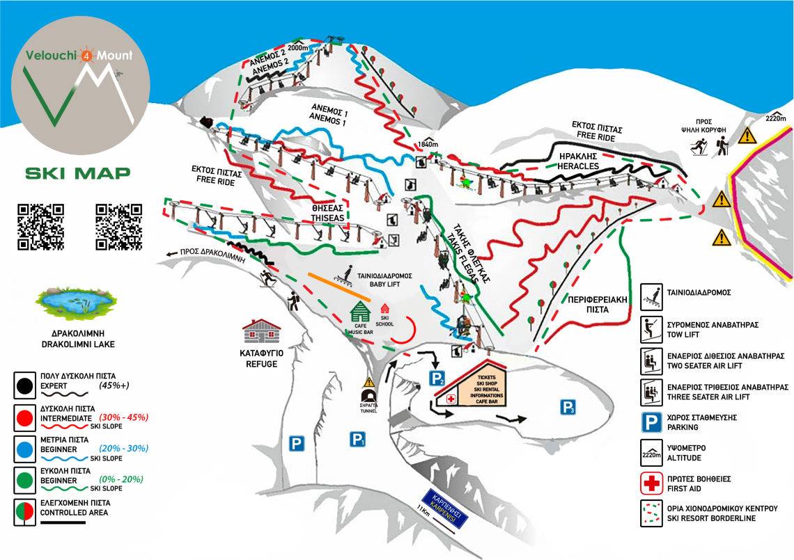 Pistekaart van het skigebied Tymfristos – Velouchi