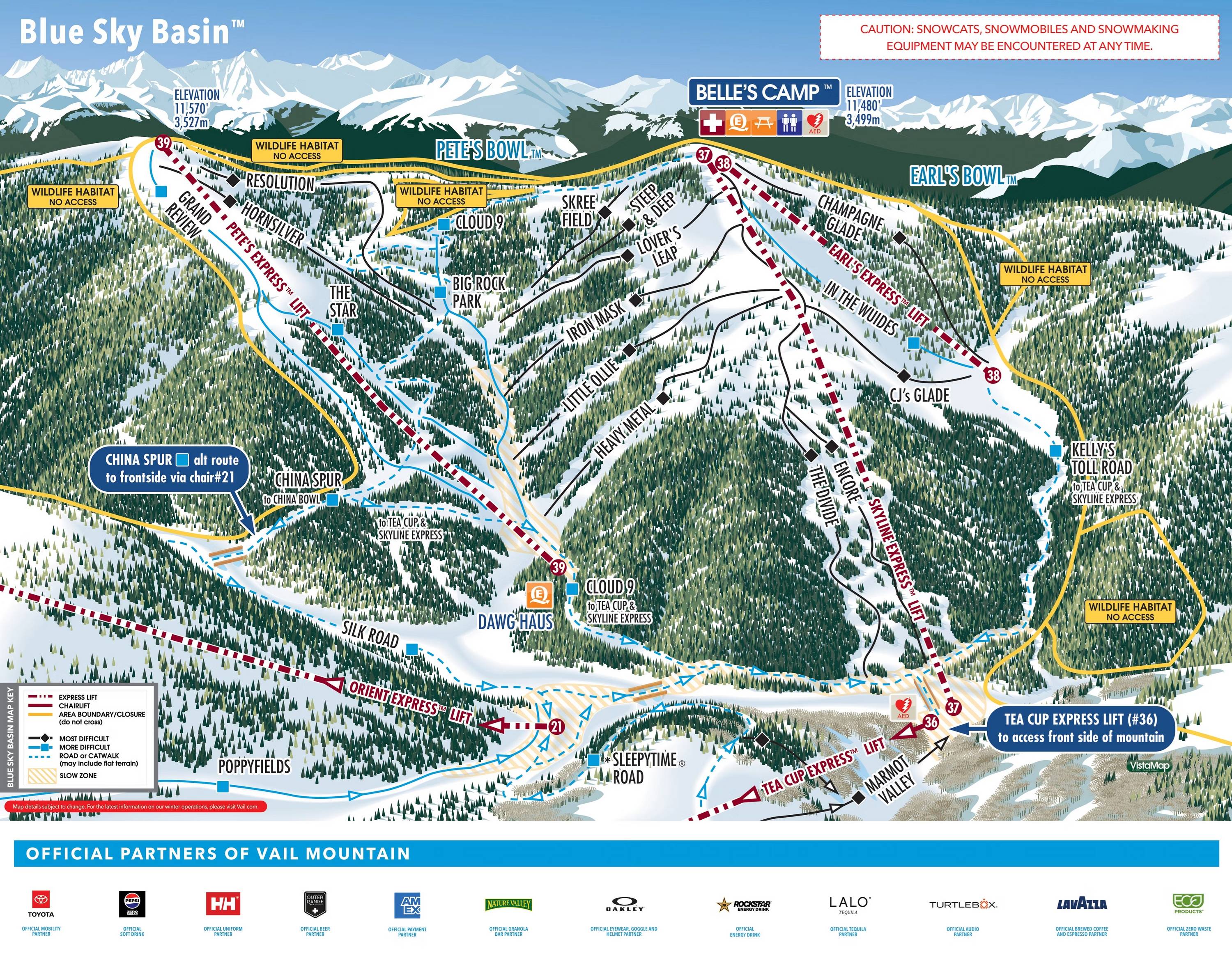 Pistekaart Vail Blue Sky Basin seizoen 2025/2026
