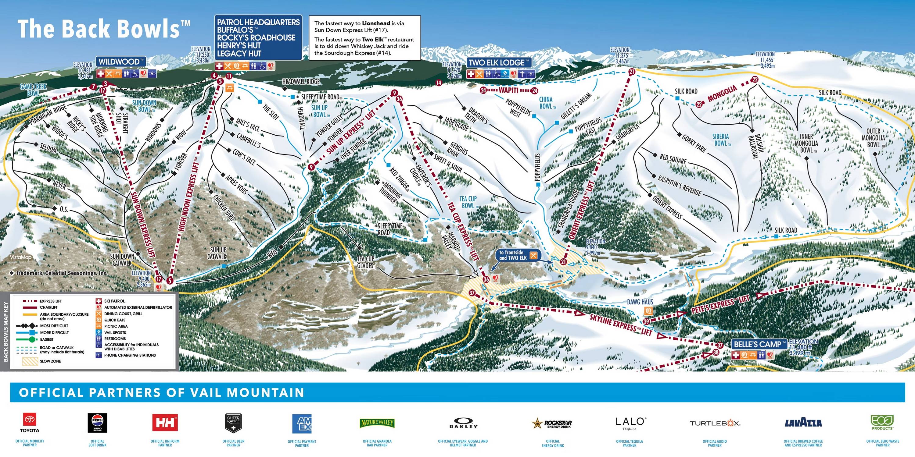 Pistekaart Vail Back Bowls seizoen 2025/2026