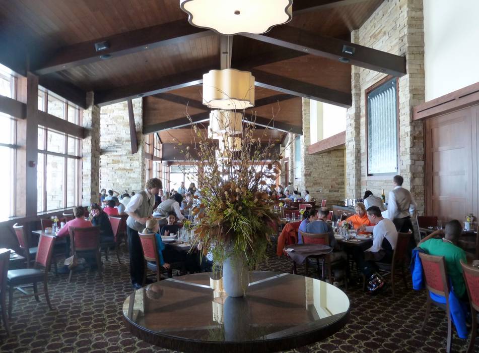 Nieuw en modern zelfbedieningsrestaurant met eersteklas keuken, bar en een grote selectie wijnen. Je hebt een prachtig uitzicht op de Gore Range door de grote ramen. Zeer uitnodigende sfeer en hoogwaardige inrichting.