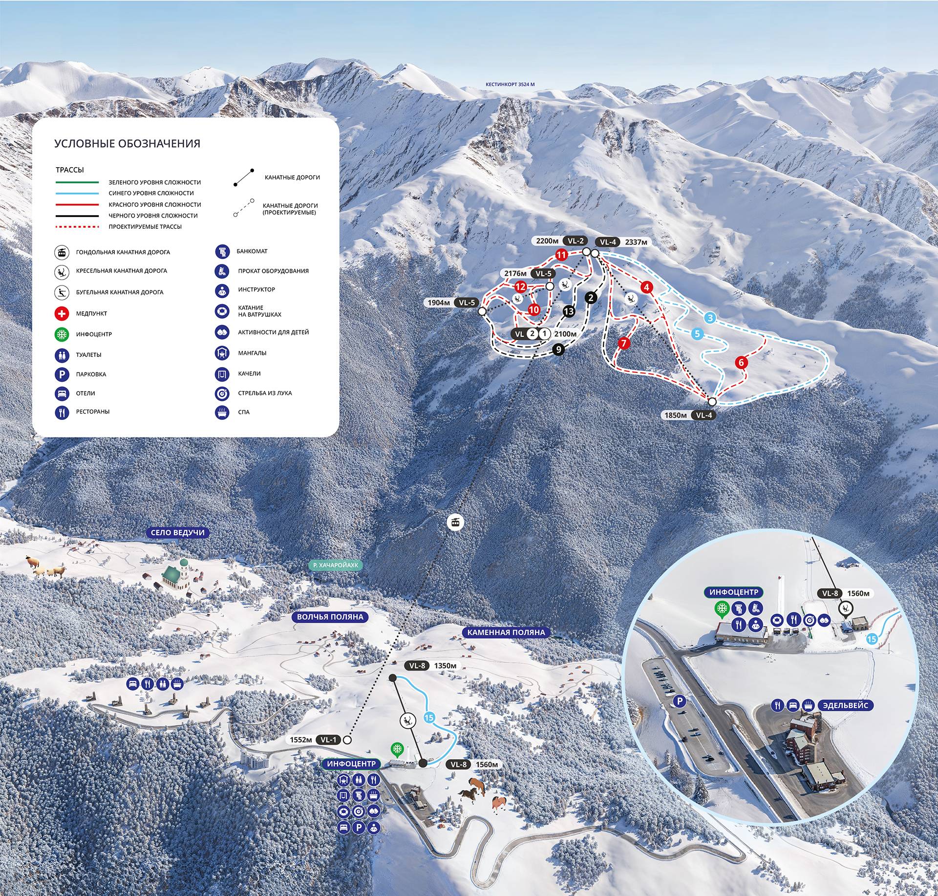 Veduchi (Ведучи) (0,6 km), Itum-Kale (Итум-Кале) (8 km) Plaatsen bij het skigebied