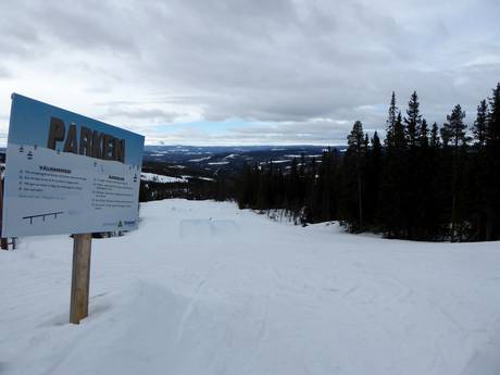Het skigebied Vemdalsskalet biedt een mooi snowpark bij de Parkliften.