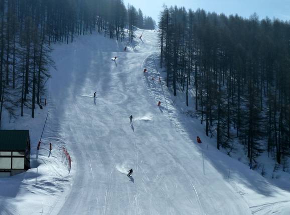 De afdaling loopt van het bergstation naar het dalstation van de sleeplift La Motta.