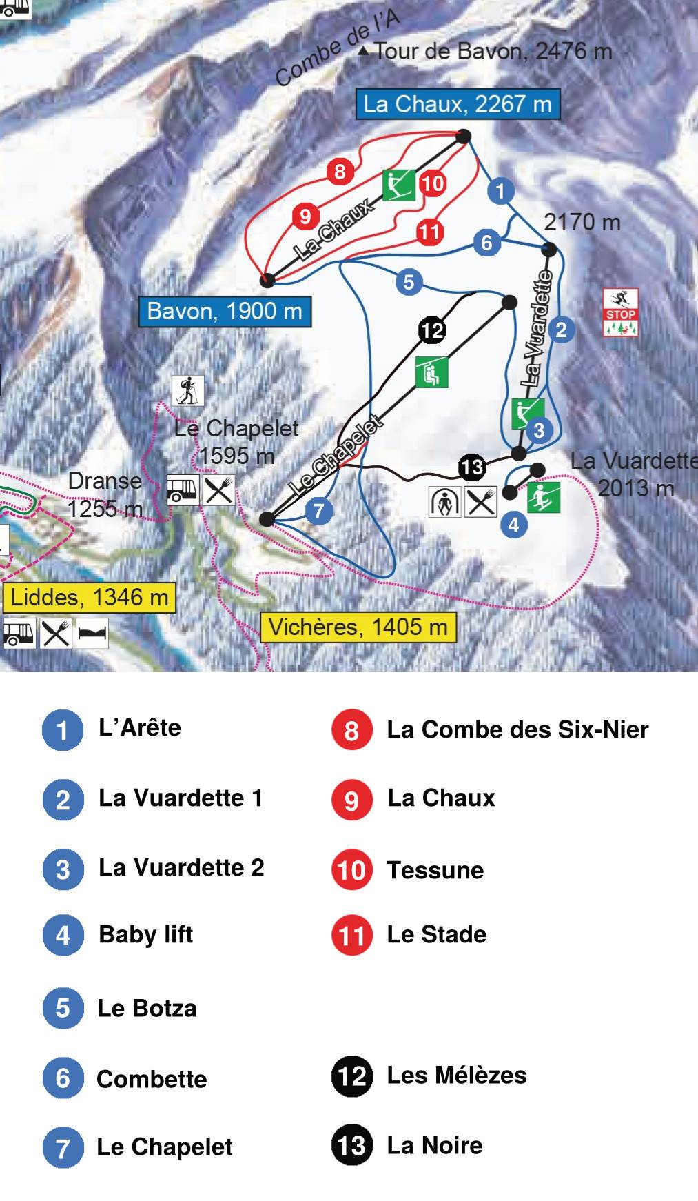 Pistekaart Vichères (Liddes) seizoen 2026/2027