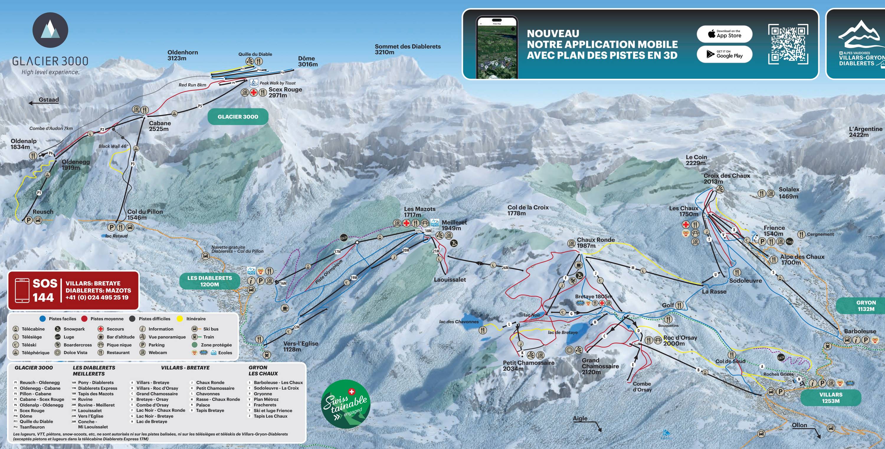Pistekaart Villars-Gryon-Les Diablerets seizoen 2025/2026